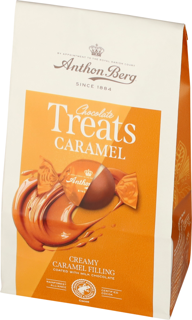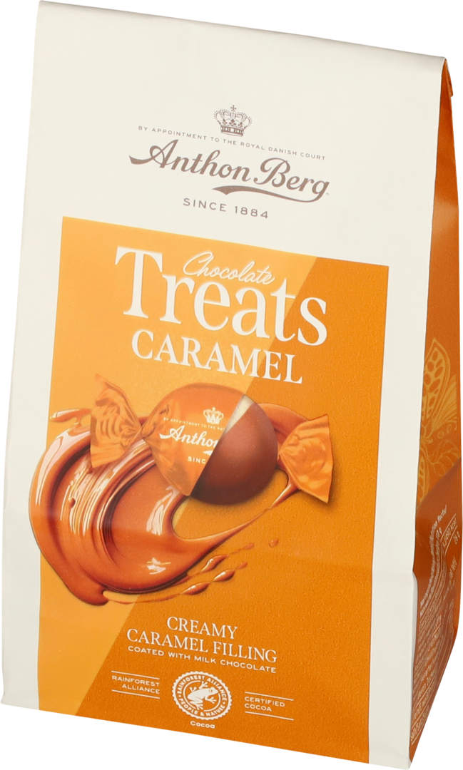 Šokolādes ar krēmīgu karameļu pildījumu. Sastāvdaļas. cukurs, glikozes sīrups, kakao sviests*, PILNPIENA pulveris, iebiezinātais PIENS, augu tauki pildījumā (palmu, šī kauliņu), kakao masa*, sīrups, emulgators (lecitīns), sāls, vaniļas ekstrakts, aromatizētāji, konservants (kālija sorbāts), biezinātājs (pektīns). Kakao vismaz 30% un piens vismaz 23% piena šokolādes daļā. *Lietus Mežu Alianses sertifikāts. Enerģētiskā un uzturvērtība:100g: 2047 kJ/490 kcal, tauki 26g (tostarp piesātinātās taukskābes 15g), ogļhidrāti 58g (tostarp cukuri 44g), olbaltumvielas 4,8g, sāls 0,41g. Neto masa: 112g. Uzglabāt sausā, vēsā vietā. Ieteicams līdz: skatīt uz iepakojuma. Ražotājs: Anthon Berg A/S, Dānija.