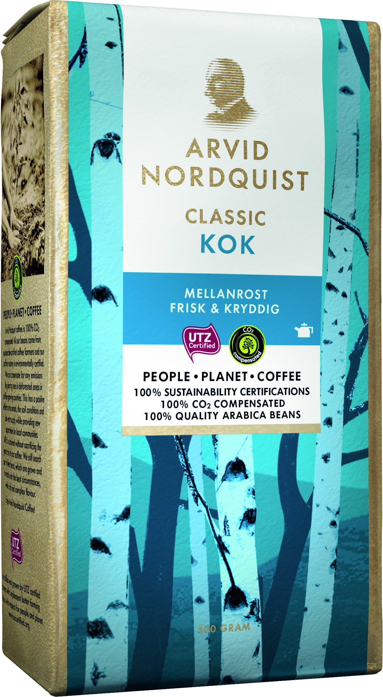 Arvid Nordquist Classic KOK Malta Kafija. Vidēji Grauzdēta. (kafijas kannai). Ar intensīvu ciedra un riekstu aromātu, svaigu, skābenu garšu un lazdu riekstu pēcgaršu. Sastāvdaļas: 100% kvalitatīva malta Arabica kafija. Pagatavošana: Ieberiet kafiju kannā, pievienojiet aukstu ūdeni.Uzkarsējiet līdz vārīšanās temperatūrai un noņemiet no uguns.Samaisiet un atstājiet ievilkties 6 minūtes. Neto masa: 500g. Pēc atvēršanas uzglabāt hermētiski noslēgtā traukā, sausā vietā un izlietot 10 dienu laikā. Ieteicams līdz:skatīt uz iepakojuma. Ražots Zviedrijā.