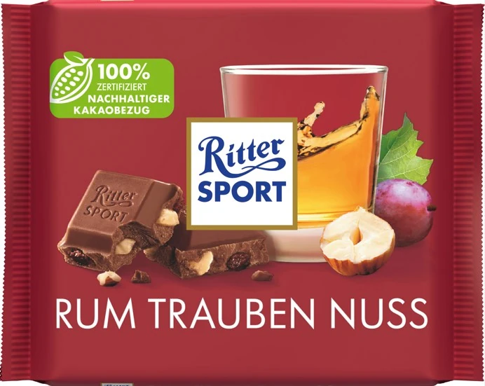 Ritter Sport Pilnpiena šokolāde ar rumu, rozīnēm, riekstiem 100g