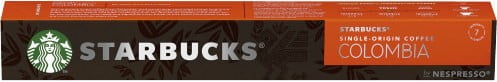 Starbucks Colombia Vidēji grauzdēta 100% Arabica Kafija ar Riekstu noti. Kapsulas(10gab) Nespresso kafijas automātiem. Iepakots aizsargatmosfērā. Pagatavošanas proporcijas un intensitātes skalu skatīt uz iepakojuma. Neto masa: 57g. Ieteicams līdz: skatīt uz iepakojuma. Šveice.